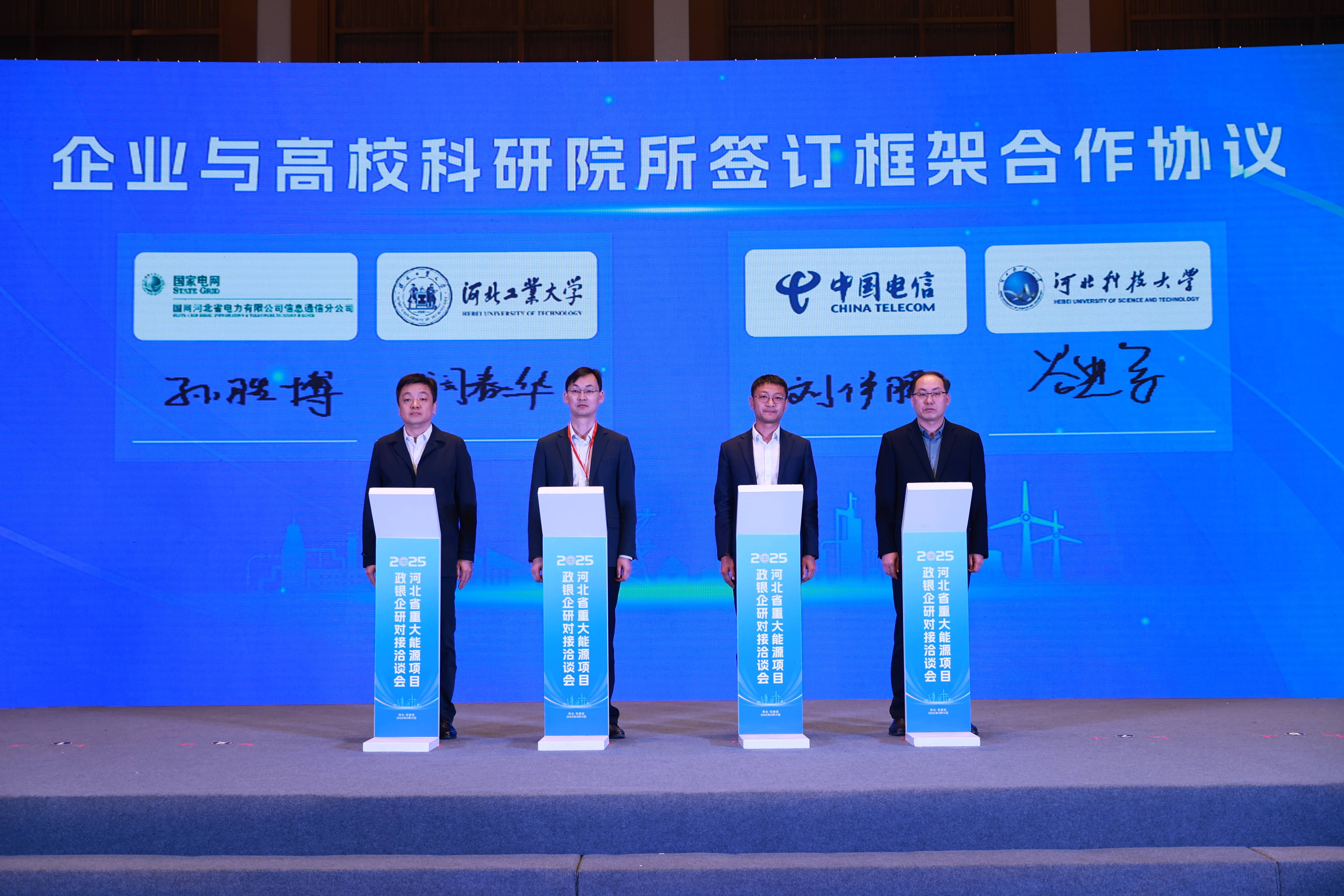 在合作签约环节,双碳研究院常务副院长闵春华代表研究院与国网河北省电力有限公司信息通信分公司签署了合作协议,双方将在智能电网、能源数字化等领域开展深度合作。此外,学校还与多地市推荐的重点项目达成合作意向,进一步推动科技成果转化和产业落地。