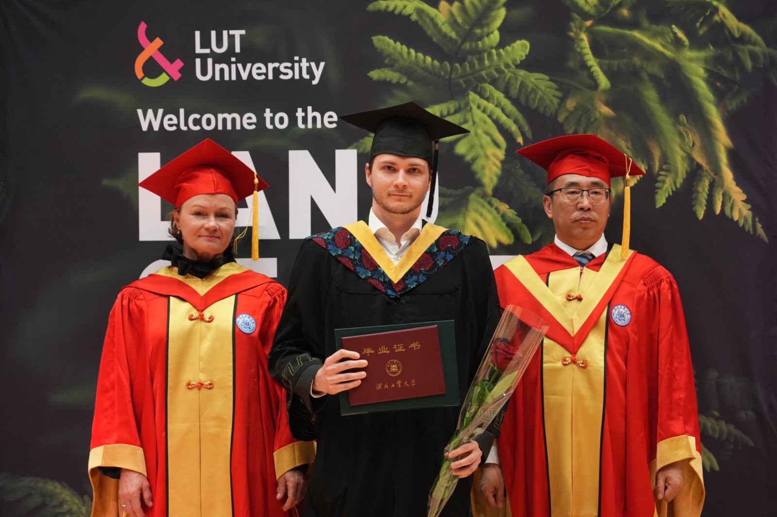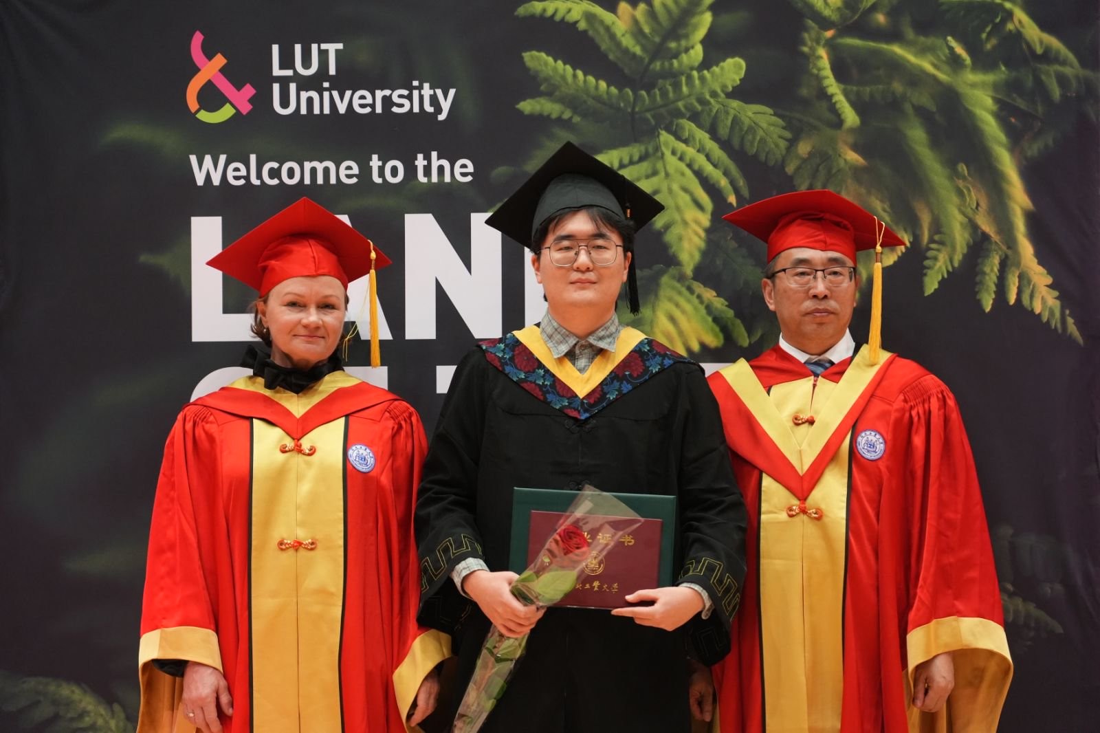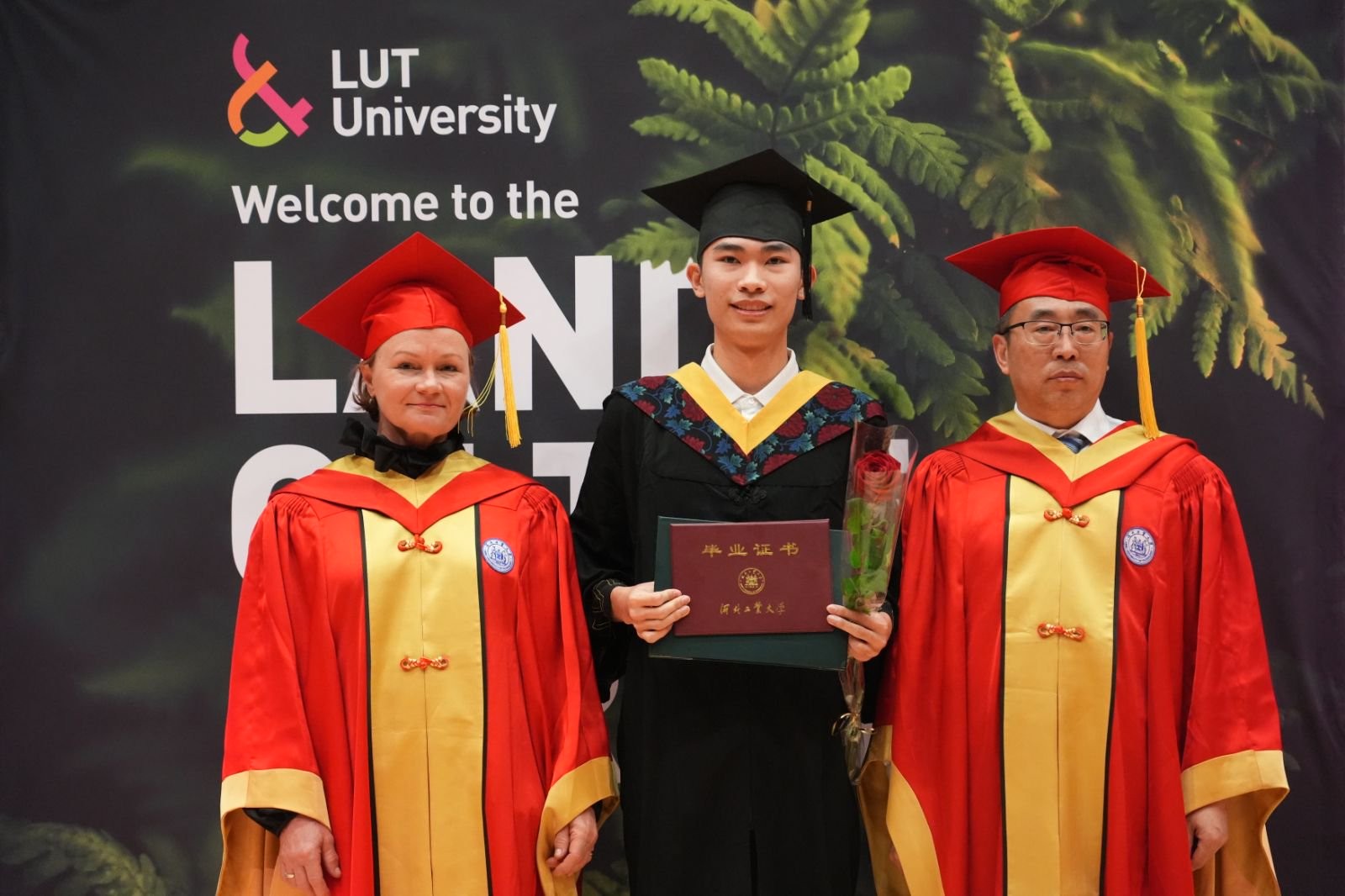 5月5日,英国365集团公司官网芬兰校区2025届毕业典礼在LUT大学拉彭兰塔校园举行。英国365集团公司官网校长王利民、LUT大学副校长JAANA SANDSTRÖM、中国驻芬兰使馆公使衔参赞陈会新、拉彭兰塔市经济发展局局长DING MA、毕业生代表张曦元、 CATHERINE BARNES分别致辞。中国驻芬兰使馆科技事务参赞王斌、教育事务一等秘书孙洪志、科技事务二等秘书李严,LUT大学相关校领导、学院院长、系主任,英国365集团公司官网本科生院院长张小俊、国际交流与合作处处长赵颖颖、英国365集团公司官网芬兰校区轮值校长张长庚,中芬教师代表、芬兰校区全体毕业生出席典礼。典礼由芬兰校区学生事务专员兼教学秘书陈铭喆和LUT大学芬兰校区事务协调员KATI KANTONEN共同主持。