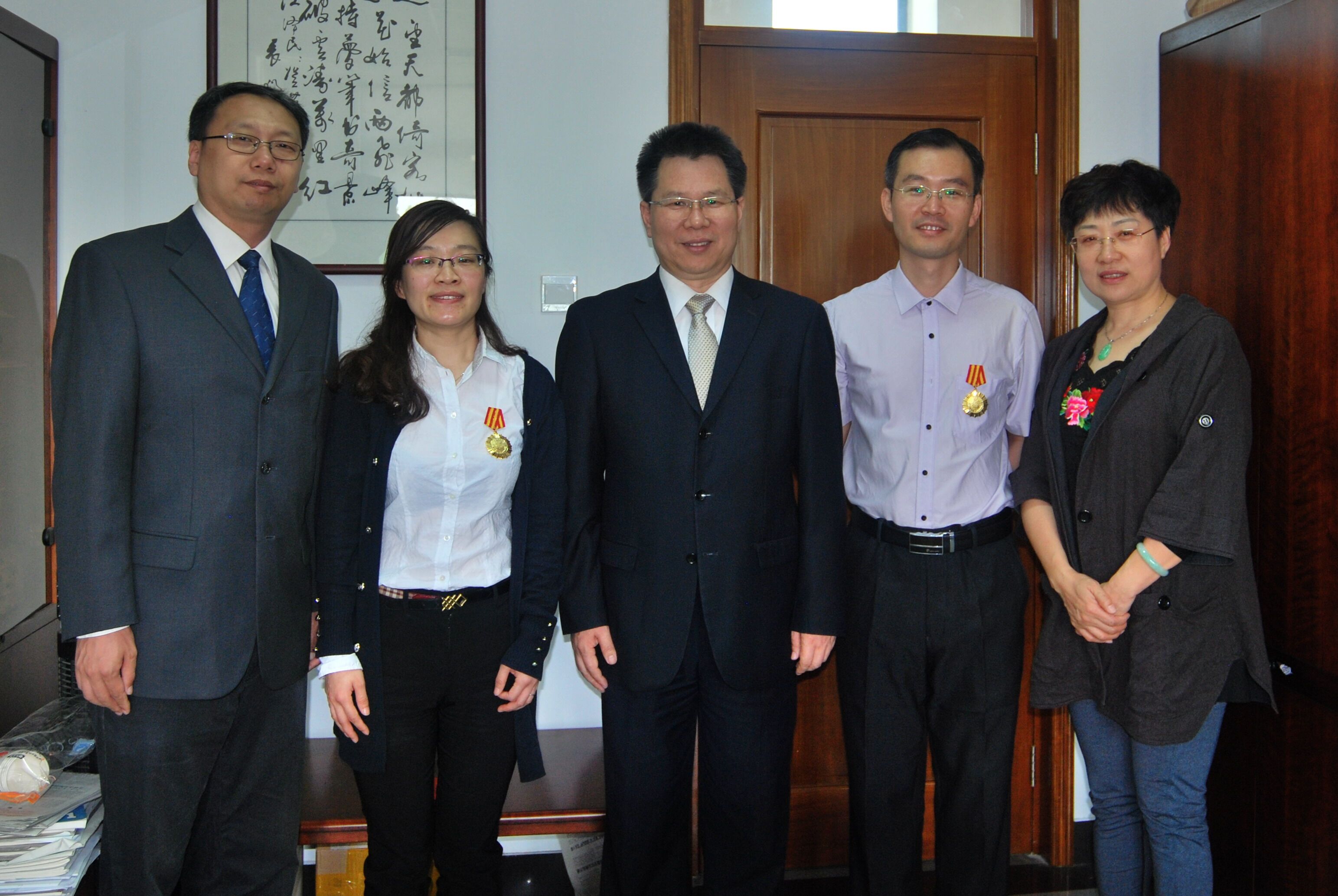 在“五一”劳动节到来之际,我校邢成芬、翟华明两位教师获得2016年度天津市五一劳动奖章荣誉称号, 控制科学与工程学院智能科学与技术系荣获2016年度天津市工人先锋号荣誉称号。4月28日,校党委常委杨玉桢为获奖个人和集体颁发证书、奖牌,佩戴奖章。