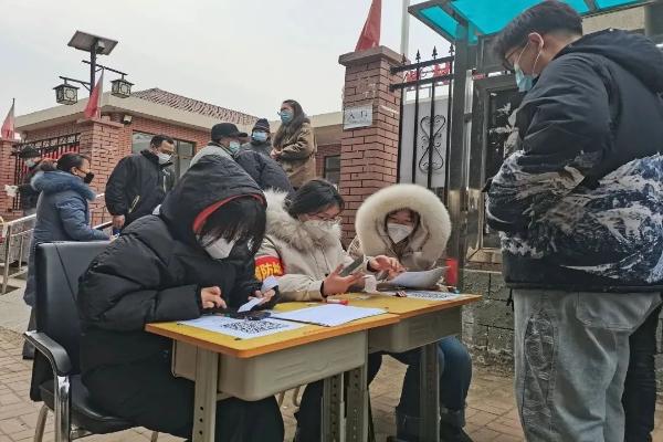 材料科学与工程学院的王宁同学在听到全员需要准备核酸检测后,就立马报名参加了村里的志愿者。1月10日早晨,她急忙赶往村委会,和几个同龄人一起维持现场秩序,登记村民信息,登记系统崩了,他们就手动录入,村民们一句句孩子们辛苦了让她觉得格外温暖。登记村民信息,维持筛查现场秩序,她不畏寒风,勇往直前。“有一分光发一分热,作为一名大学生,我们应该为这个有温度的社会、国家贡献出自己的一份力量。”