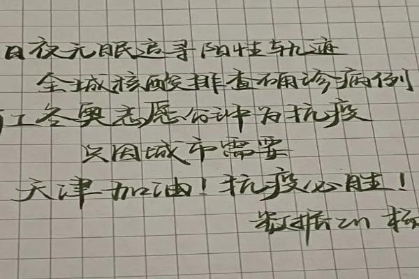1月9日第一次大规模核酸检测筛查时,由于检测网点少,检测服务志愿者短缺,南开区鼓楼街道历时17个多小时艰难完成。电气工程学院的李练兵老师家住南开,意识到社区志愿者严重不足后,希望能为社区筛查做一点贡献。12日第二次大规模核酸检测筛查时,李练兵积极报名参加了志愿者服务,担任检测登记任务。检测登记人员使用手机APP对身份证拍照识别,或者手工录入姓名和身份证号。每组登记人员持续工作2个小时,倒休2小时又继续上岗,12点以后每小时轮换一次。从下午5点一直到凌晨1点半,他持续奋战,直到完全没有了检测居民才休息。15日的三筛,李练兵又毫不犹豫的“上岗”。