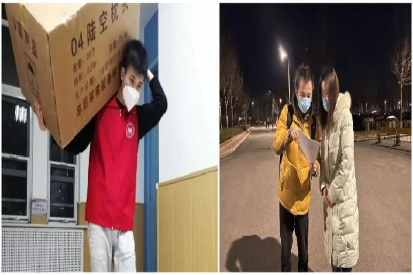 在体育中心,他们主动分组集结,完成各点位物资准备组织人员入场,紧张但有序。从下午两点到晚上十二点,配合防疫工作人员完成了对北辰校区的核酸检测,结束时早已经冻成“冰棍人”。