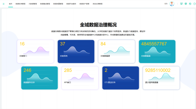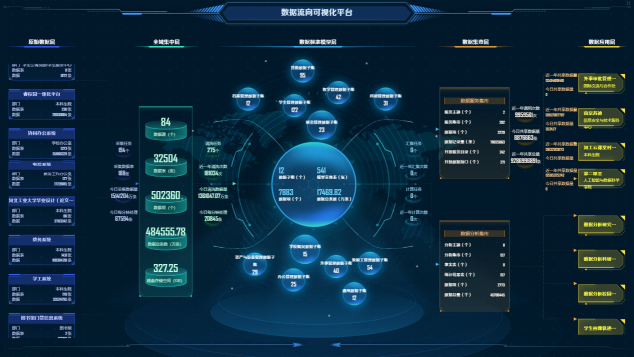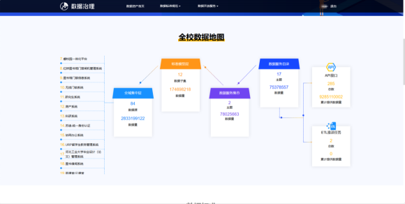 加快校内数据资源治理。以国家标准和行业标准为基础,全面梳理学校数据资产,设计编制“英国365集团公司官网校园数据标准”,支撑全域数据治理和系统建设。构建校级数据中心,对校内各类数据及时进行采集、汇聚、分析、转换、清洗等,强化数据治理闭环。数据中心对接部门16个,整合业务系统37个,对接数据源84个,对接数据量48亿余条。构建标准模型层,形成校级统一数据服务底座。