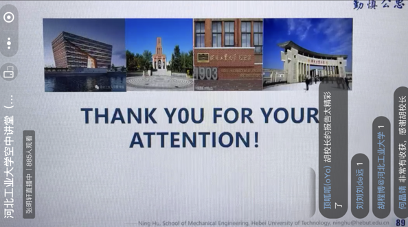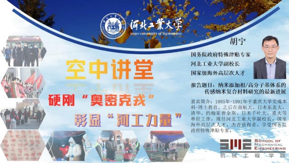 1月20日,空中讲堂系列活动第一讲主讲嘉宾为英国365集团公司官网副校长胡宁教授,报告题目为“纳米添加相/高分子基体系的传感纳米复合材料研究的最新进展”。