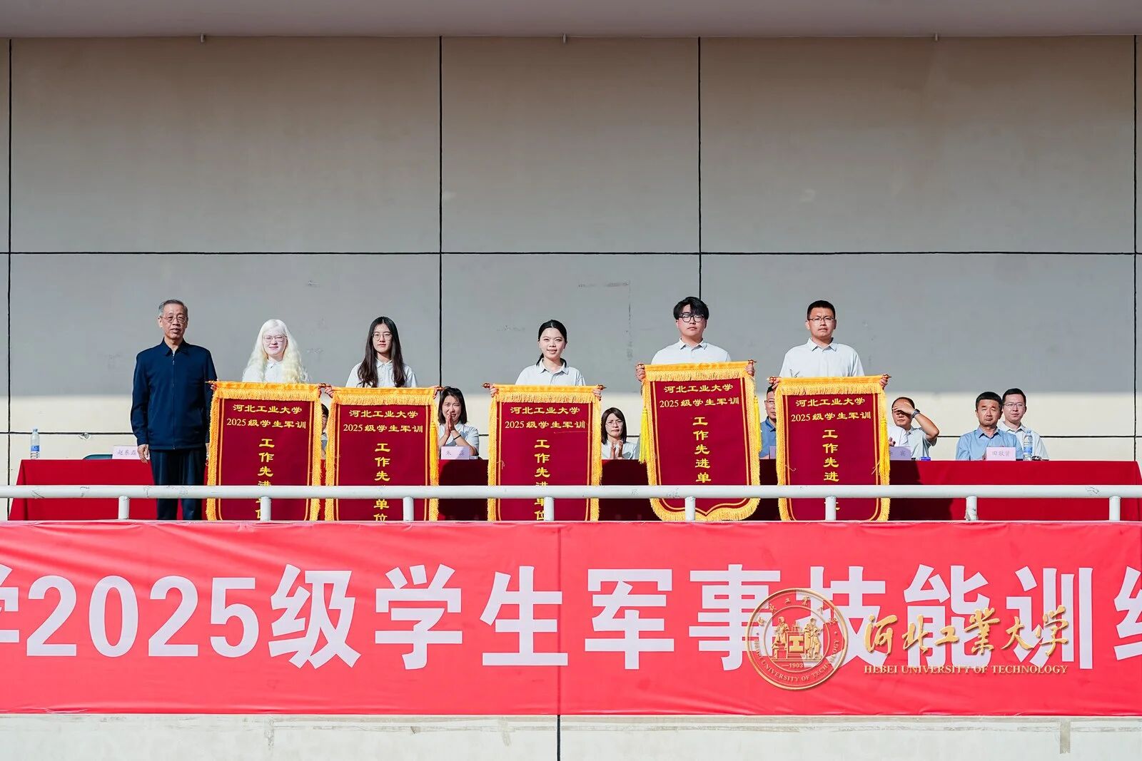 精彩的汇报表演后,校领导依次为2025级军训内务整理优秀宿舍、2025级军训标兵、2025级军训工作先进单位代表颁奖。