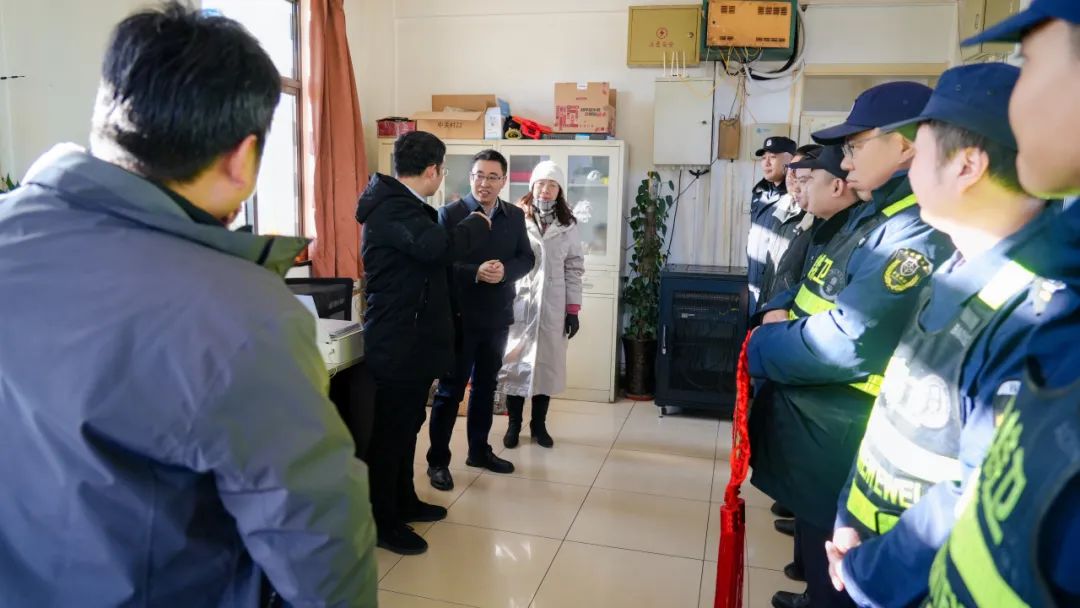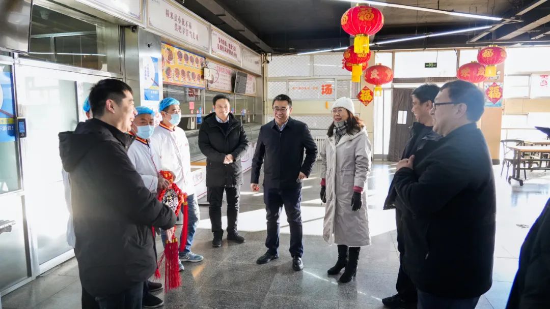 校领导先后来到北辰校区西区锅炉房,安全工作处实时控制中心,东区食堂、宿舍,南门门岗;红桥东院门岗、变电室、食堂、宿舍等地,实地查看了解寒假期间学校的安全保卫、后勤保障和值班值守等方面的工作情况,认真听取了相关工作人员关于岗位运行情况的介绍,代表学校向在岗同志及其亲属表示新春的问候,对他们尽职守责确保校园安全稳定的辛勤付出表示感谢,祝愿他们度过一个祥和、平安的春节。