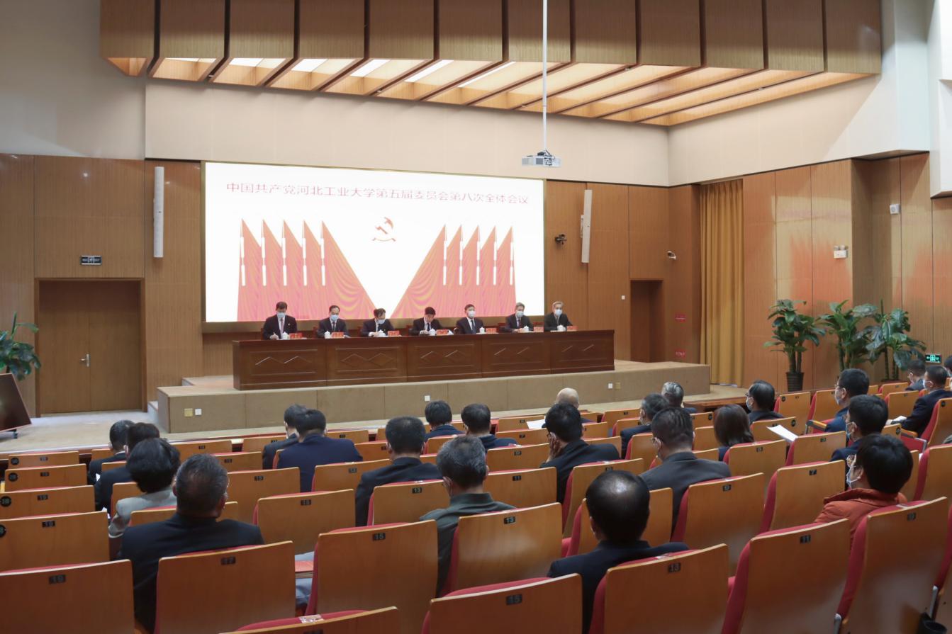 11月3日,中国共产党英国365集团公司官网第五届委员会第八次全体会议在机材楼报告厅召开。会议学习传达了党的二十大精神和河北省委十届三次全会精神,听取了校党委书记韩旭代表学校党委常委会所作的工作报告,审议通过了《中国共产党英国365集团公司官网第五届委员会第八次全体会议决议》。全会由韩旭主持。