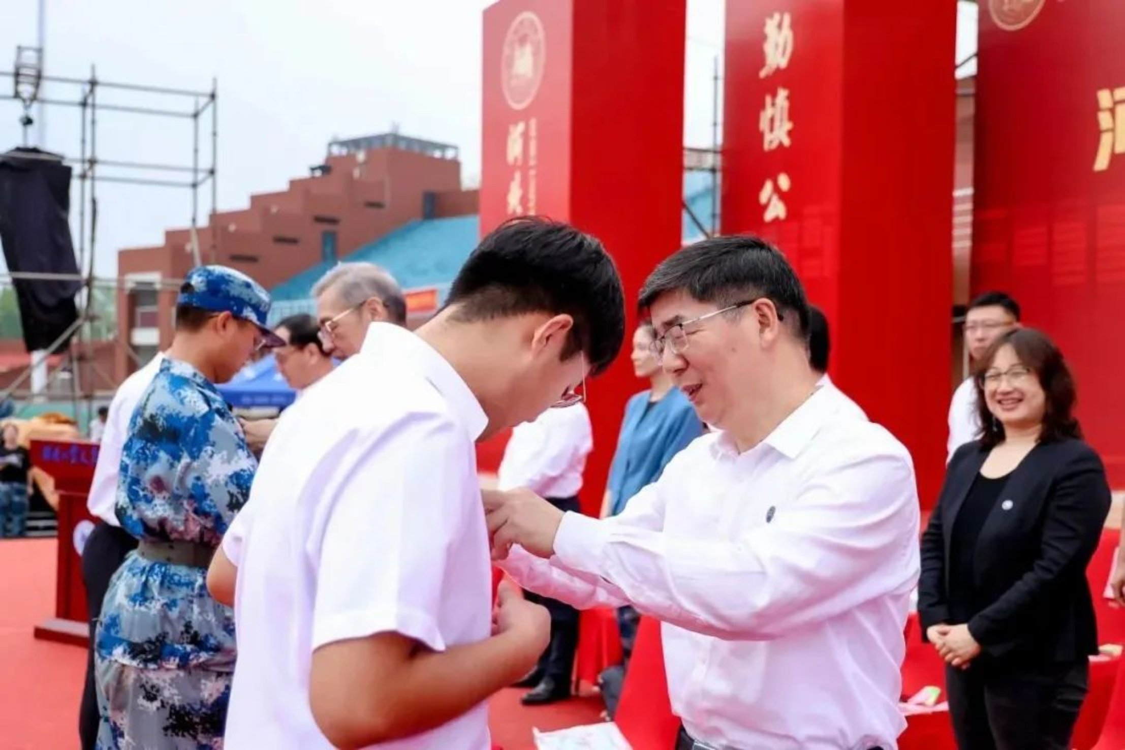 校友代表、1994级化工学院刘树林分享了自己对大学生活的感悟,他鼓励同学们志存高远、不负韶华,将个人与国家命运紧密相连;力学笃行、知行合一,在实践中拓宽视野培养综合素质;脚踏实地、行稳致远,为自己的未来打下坚实基础;胸怀梦想、拥抱未来,紧跟时代步伐,书写自己的精彩篇章。