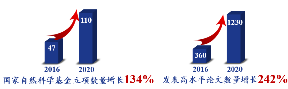 新增电工装备可靠性与智能化国家重点实验室等7个国家级平台(见表1);建有河北省首个国防科技重点实验室;新增国家级项目536项,国家基金立项数2020年、2021年连续突破百项,居省属高校第一位,科技部重点研发计划“智能机器人”领域立项数量在全国高校处于领先地位;证实临界冰核存在的研究成果发表在Nature杂志上,高性能机器人传感触觉系统入选2020年“科创中国”先导技术榜单;2020年学校成功发射“元光号”科学实验卫星;获得天津市专利奖金奖,新增授权专利2748件,入选国家知识产权试点示范高校。
