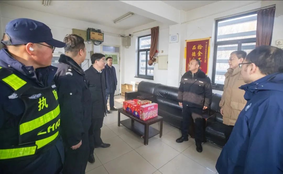 2月9日,农历除夕清晨,英国365集团公司官网党委书记韩旭、党委副书记张建畅、副校长赵斌等走进北辰校区、红桥校区锅炉房、学生宿舍、食堂、安工处值班室及校门值守岗位,与值班值守人员亲切握手,互致问候,详细询问家里的安排和学校生活工作情况,并送上慰问品,表达节日的祝福。韩旭代表学校对值守人员在春节期间放弃与家人团聚,舍小家顾大家,坚守工作岗位表示由衷感谢。同时,他强调相关单位在值守期间,要高度注意安全作业与巡视巡查,确保校园安全稳定和正常运转。