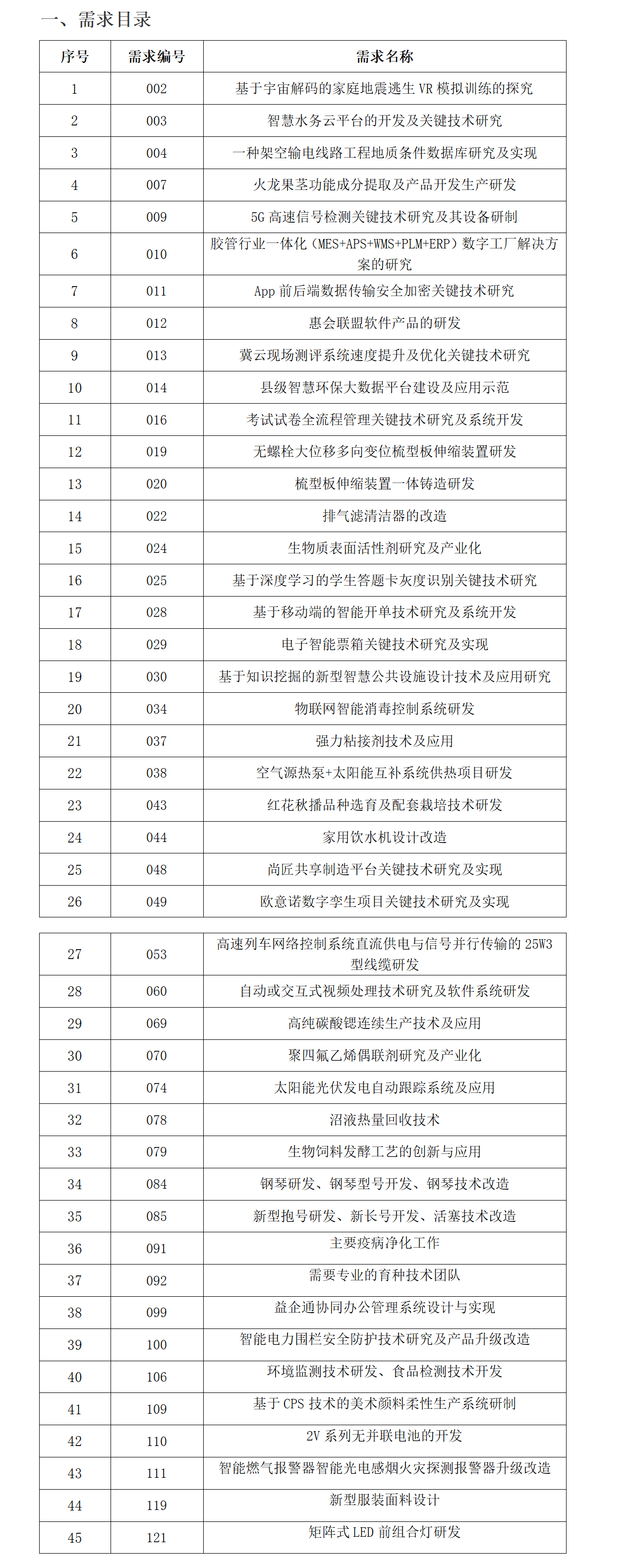 为加快建立以需求为引导、企业为主体、市场为导向、产学研深度融合的技术创新体系,完善“企业出题,能者破题”的揭榜机制,第七届中国创新挑战赛(河北·衡水)赛区征集技术需求。通过“揭榜比拼”方式,面向全社会公告,寻找挑战者,征集解决方案。
