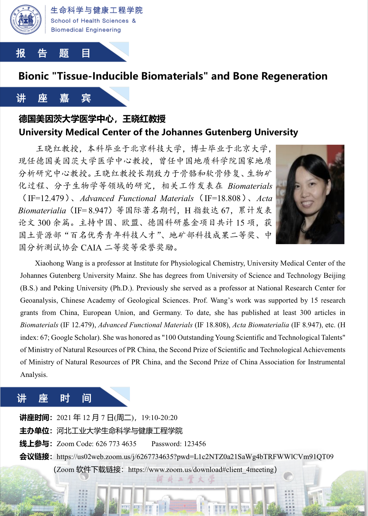 学术讲座:Bionic "Tissue-Inducible Biomaterials" and Bone Regeneration