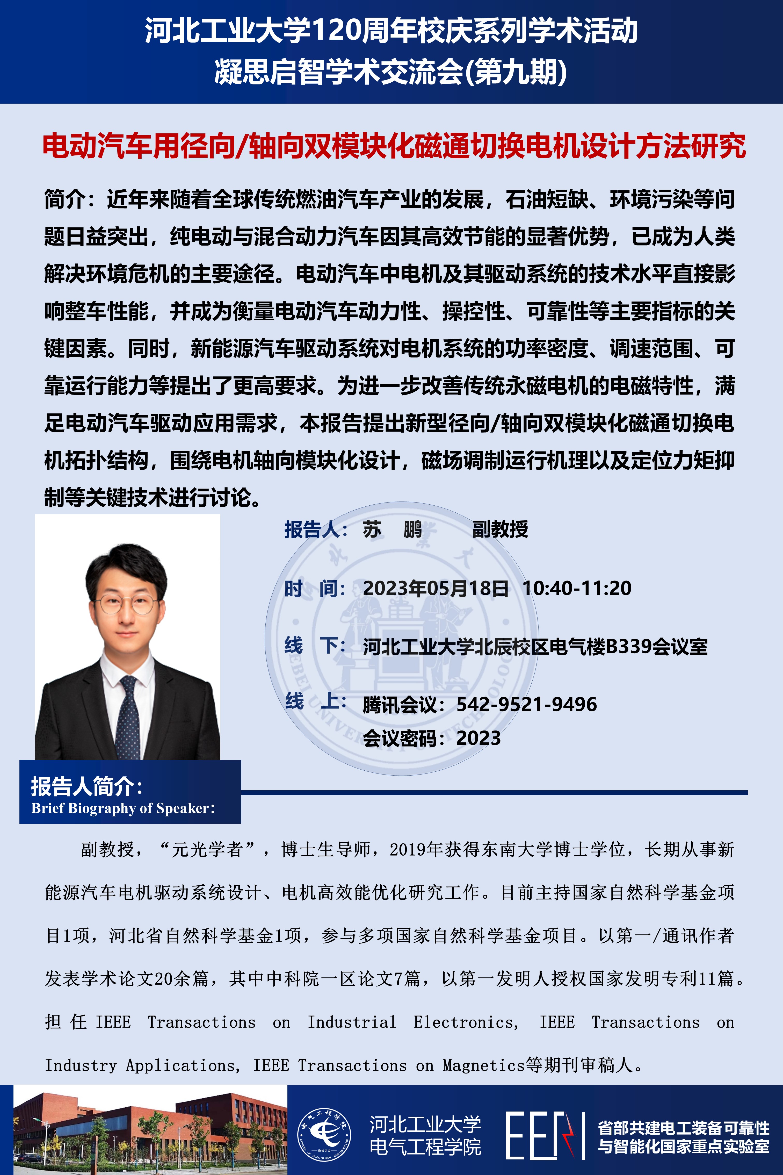 凝思启智学术交流会(第九期):基于基液态金属的柔性器件研究,电动汽车用径向/轴向双模块化磁通切换电机设计方法研究