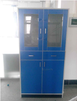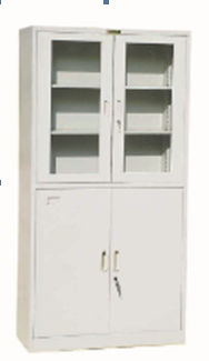 (3)上半柜玻璃门三层、下半柜铁门、上下两层均带锁。